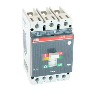 ABB Tmax Normal performance 3-pole molded case circuit breaker has 600 VAC/VDC voltage rating and 40 A amp rating with a interrupt rating of 14 kA at 600 VAC. Brand Name|ABB#MFR Part Number|TS3N040TW#UPC|804325347167#UNSPSC|39121616#Item|Molded Case Circuit Breaker#Type|Normal Performance#Series|Tmax, TS3N#Voltage Rating|600 VAC/VDC#Amperage Rating|40 A#Frequency Rating|50/60 Hz#Interrupt Rating|14 kA at 600 VAC#Frame|TS3-150A#Trip Type|Thermal/Magnetic#Trip Range|500 A Magnetic#Number of Poles|3#Actuator Type|Toggle#Mounting Type|Panel#Dimensions|6.7 in Height x 4.13 in Width x 4.07 in Depth#Standard/Approvals|CSA C22.2, UL 489