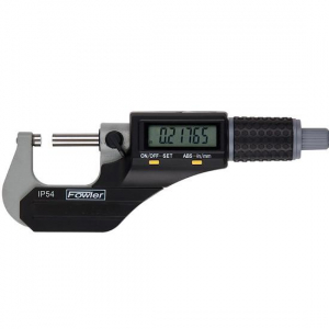 - Digital outside micrometers with a choice of measuring range and flat anvil/spindle pair for general purpose measuring