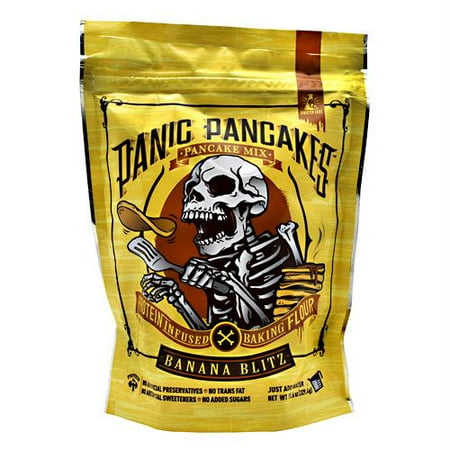 <br /> <b>Details : </b> Pancake Mix, Banana Blitz <br />Pancake Mix. Protein Infused. Baking Flour. 20g protein. No Artificial Preservatives. No Artificial Sweeteners. No Trans Fat. No Added Sugars. <br /> <br /> <b>Manufacturer : </b> Sinister Labs <br /> <br /> <b>Flavor : </b> Banana Blitz <br /> <br /> <b>Ingredients : </b> Whole Grain Oat Flour, Buttermilk Powder, Instantized Whey Protein Isoalte, Medium Chain Triglyceride Powder [Medium Chain Triglycerides (from Palm Kernal and Coconut Oils), Sodium Casseinate (A Milk Derivative), Contains 2% or Less of Each of the Following: Silicon Dioxide, Sunflower Lecithin], Organic Agave Inulin, Natural and Artificial Flavor, Double Acting Baking Powder (Sodium Acid Pyrophosphate, Sodium Bicarbonate, Corn Starch, Monocalcium Phosphate), Sodium Bicarbonate, Sodium Chloride, Gum Blend (Cellulose Gum, Xanthan Gum, Carrageenan), Sunflower Lecithin, Monk Fruit Extract. <br /> <br /> <b>Extended Size Details : </b> 6 Servings (11.6 oz) <br /> <br /> <b>Directions : </b> Panic Pancakes: Whisk 1 serving with 1/4 cup cold water until well blended. Let sit for 3 minutes while griddle warms up. Batter will thicken as it sits. Heat griddle to low heart (290'F) Cook each side of the pancake for 3-4 minutes or until golden brown. For thinner pancakes: add 1-2 tbsp of water until a desired consistency is reached. For an extra kick of energy and additional protein add a scoop of your favorite Angry Mills Peanut Powder. Then top it off with chocolate chips, fruit, and Angry Mills spreads. Waffle Webs: Wisk 2 servings, 1 egg, and 2/3 cup cold water until well blended. Let sit for 3 minutes while waffle heats up. Cook according to your waffle iron's instructions. <br /> <br /> <table style="border:2px solid black;border-collapse:collapse; width:320px"> <tbody> <tr> <td colspan="3"><strong><u>Nutrition Facts</u></strong></td> </tr> <tr> <td colspan="3"><b>Serving Size</b> : 1/2 Cup </td> </tr> <tr> <td colspan="3"><b>Servings Per Container</b> : 6 </td> </tr> <tr> <td colspan="3"> </td> </tr> <tr> <td colspan="3"><b><u>Amount Per Serving</u></b></td> </tr> <tr> <td style="border:2px solid black;"></td> <td style="border:2px solid black;"><strong>Serving</strong></td> <td style="border:2px solid black;"><strong>% Daily Value</strong></td> </tr> <tr> <td style="border:2px solid black;"><b>Calories</b></td> <td style="border:2px solid black;">200.0 </td> <td style="border:2px solid black;"> - </td> </tr> <tr> <td style="border:2px solid black;"><b>Total Fat</b></td> <td style="border:2px solid black;">5.0 g</td> <td style="border:2px solid black;">6%</td> </tr> <tr> <td style="border:2px solid black; padding-left: 20px;">Saturated Fat</td> <td style="border:2px solid black;">3.5 g</td> <td style="border:2px solid black;">17%</td> </tr> <tr> <td style="border:2px solid black; padding-left: 20px;">Trans Fat</td> <td style="border:2px solid black;">0.0 g</td> <td style="border:2px solid black;"> - </td> </tr> <tr> <td style="border:2px solid black; padding-left: 20px;">Cholesterol</td> <td style="border:2px solid black;">15.0 mg</td> <td style="border:2px solid black;">5%</td> </tr> <tr> <td style="border:2px solid black;"><b>Sodium</b></td> <td style="border:2px solid black;">350.0 mg</td> <td style="border:2px solid black;">15%</td> </tr> <tr> <td style="border:2px solid black;"><b>Potassium</b></td> <td style="border:2px solid black;">360.0 mg</td> <td style="border:2px solid black;">8%</td> </tr> <tr> <td style="border:2px solid black;"><b>Total Carbohydrate</b></td> <td style="border:2px solid black;">19.0 g</td> <td style="border:2px solid black;">7%</td> </tr> <tr> <td style="border:2px solid black; padding-left: 20px;">Dietary Fiber</td> <td style="border:2px solid black;">4.0 g</td> <td style="border:2px solid black;">14%</td> </tr> <tr> <td style="border:2px solid black;"><b>Protein</b></td> <td style="border:2px solid black;">20.0 g</td> <td style="border:2px solid black;"> - </td> </tr> <tr> <td style="border:2px solid black; padding-left: 20px;">Calcium</td> <td style="border:2px solid black;">210.0 mg</td> </tr> </tbody> </table>