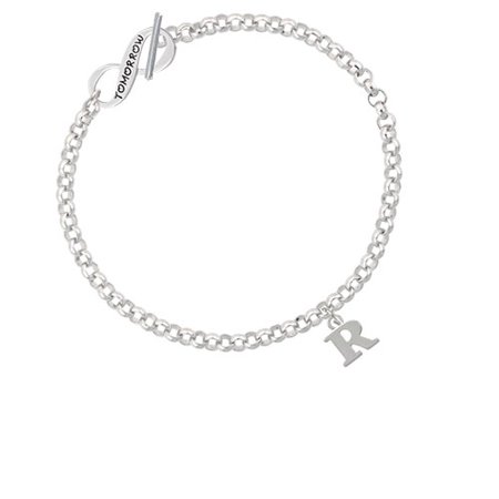 Small Silver Tone Initial - R Today Tomorrow Infinity Toggle Chain Bracelet. Silver Tone, hand enameled charms. Charm size is approx. 0.45 x 0.39 x 0.07 inches (HxWxD) including loop. 3mm Rolo Chain is 7 inches long. Infinity Toggle is approx. 0.90 x 0.40 x 0.10 inches (HxWxD). The infinity symbol represents the quality of being limitless or endless. Choose your favorite message to represent your love, faith, or commitment that lasts forever. We are a family owned company in the U.S.A. since 1977. PLEASE NOTE: Our products are lead safe, but are not intended for children 14 years and younger.
