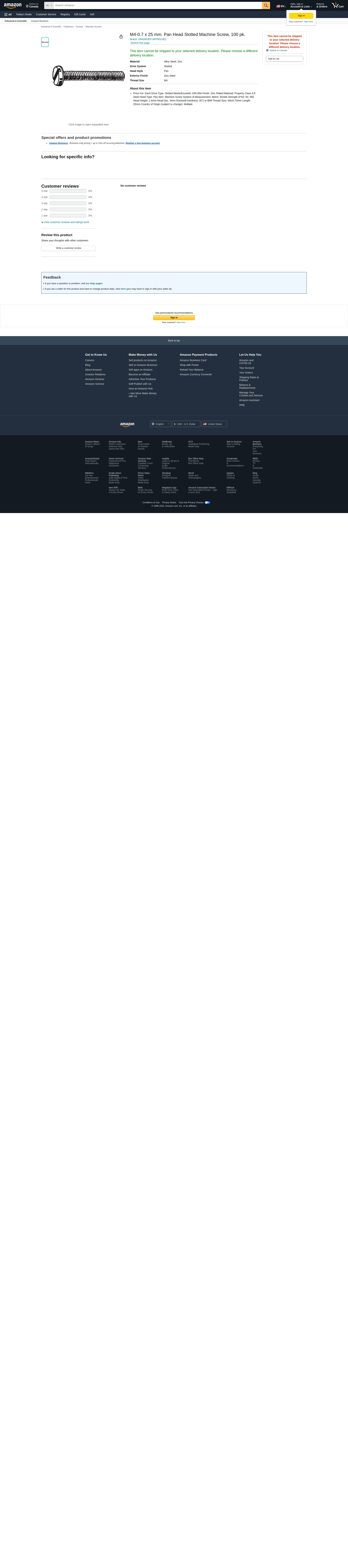 M4-0.7 x 25 mm. Pan Head Slotted Machine Screw, 100 pk.