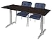 Regency Via Training Table Set with two Uptown Chairs, 60" x 24", Mocha Walnut/Chrome