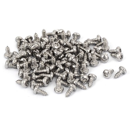 <ul> <li>Weight: 44g; Package Content: 100(+/-2%)pcs x Self Tapping Screw</li> <li>Overall Size: 5 x 8.5mm/0.2'' x 0.33''(Max.D*L); Main Color: Silver Tone</li> <li>Thread Size: 2.9 x 6.5mm/0.11'' x 0.26''(D*L); Drive Type: Star Drive</li> <li>Head Style: Pan Head</li> </ul>