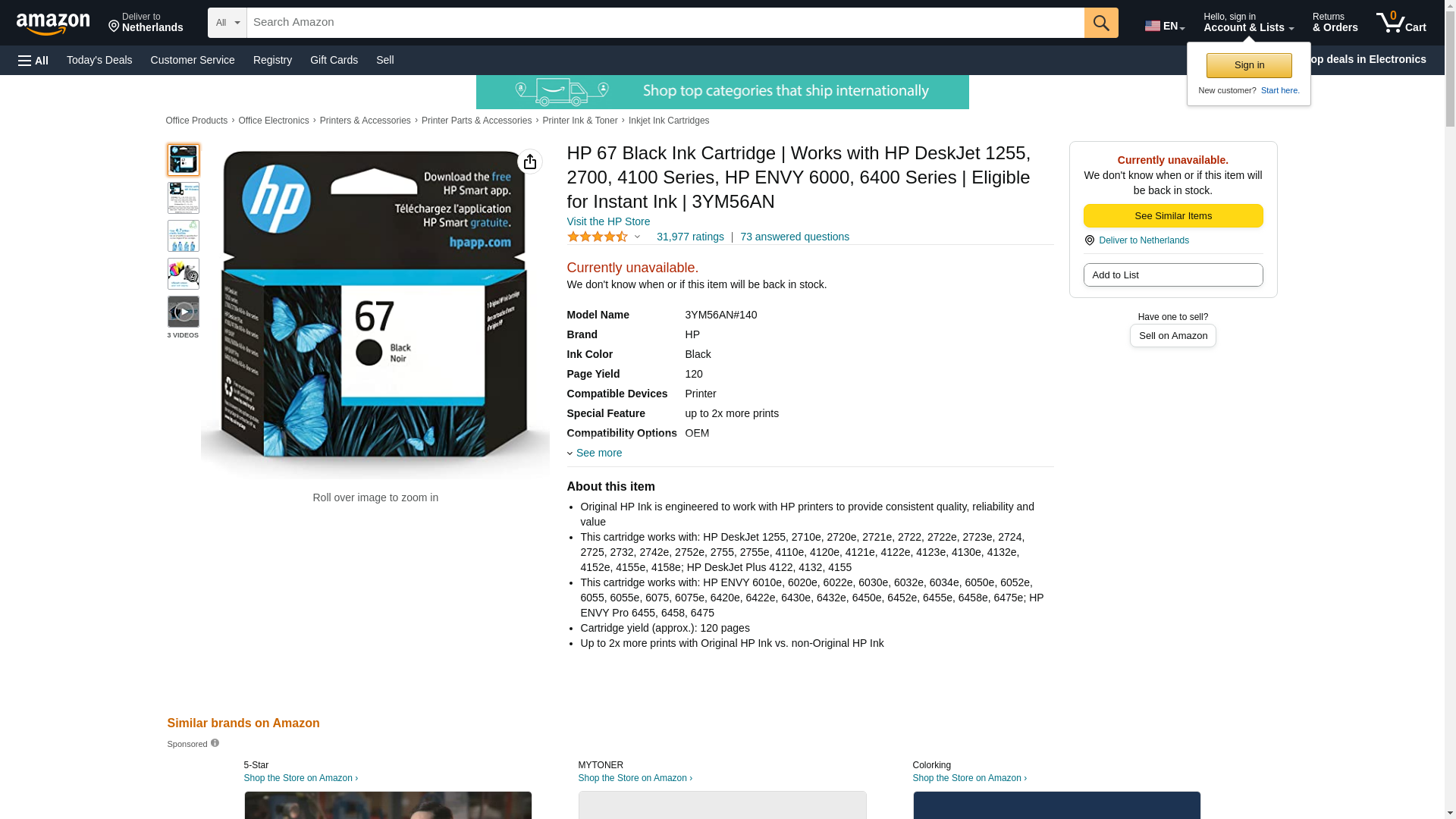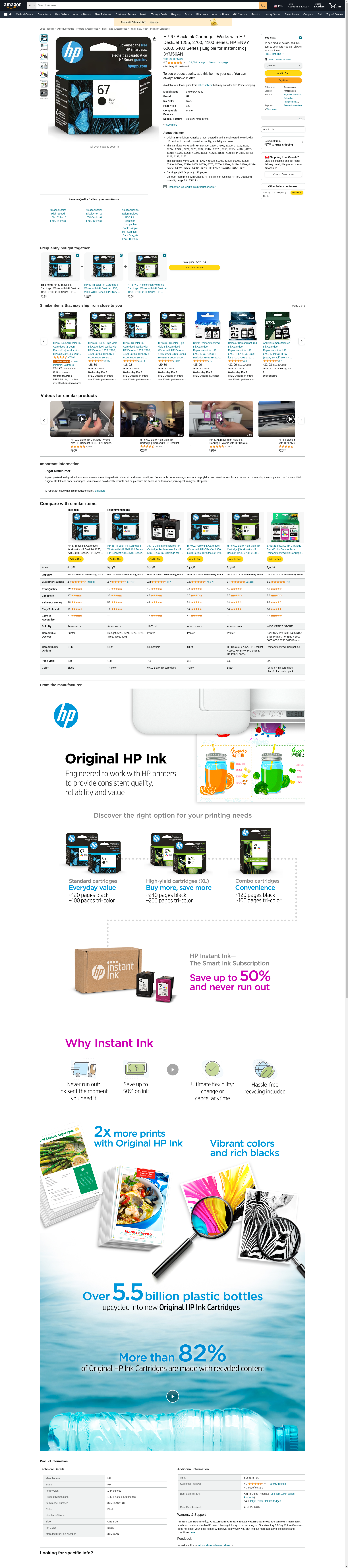 HP 67 Black Ink Cartridge | Works with HP DeskJet 1255, 2700, 4100 Series, HP ENVY 6000, 6400 Series | Eligible for Instant Ink | 3YM56AN