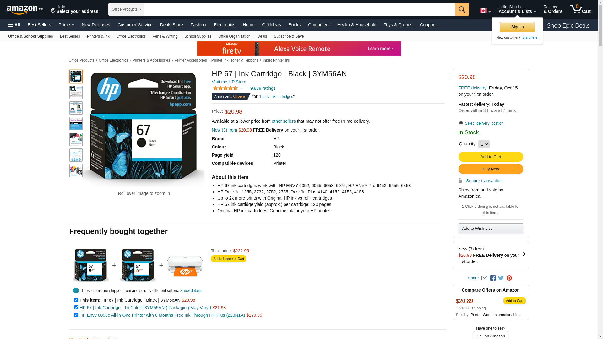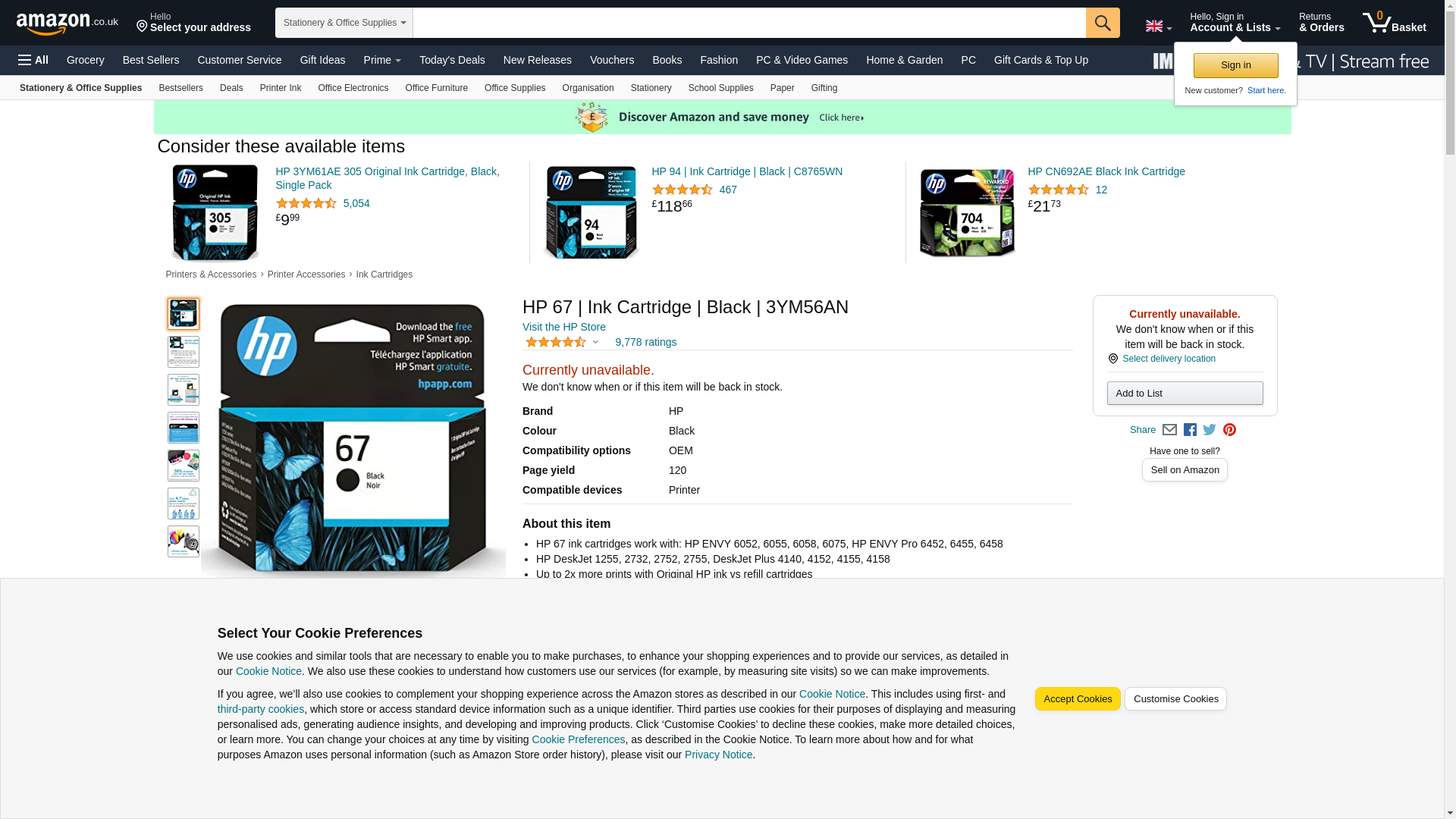 HP 67 Standard Capacity Ink Cartridge Black 3YM56AN#140 - Best Buy