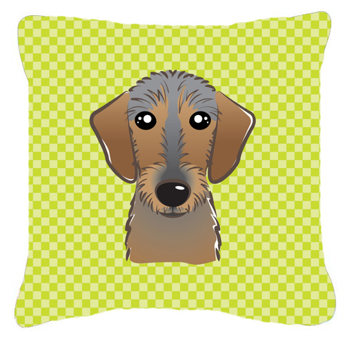 Carolines Treasures BB1295PW1818 Checkerboard Lime Green Wirehaired Dachshund Fabric Decorative Pillow, 18 x 18 In.