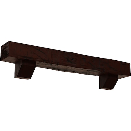 8" H x 12" D x 84" W Hand Hewn Faux Wood Fireplace Mantel Kit w/ Ashford Corbels, Natural Pecan