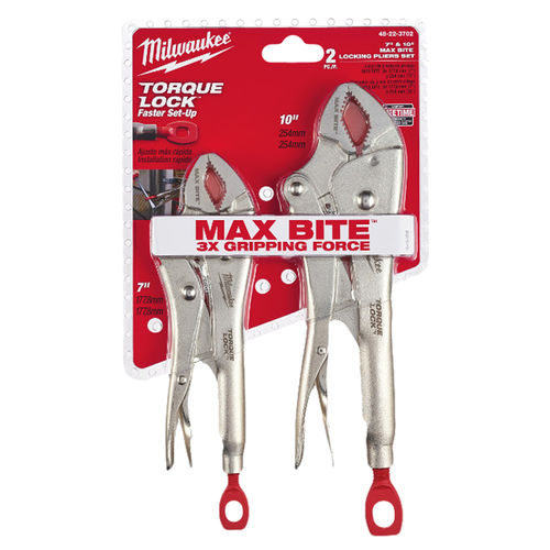 Milwaukee 2 Piece 7" & 10" Curved Jaw Locking Pliers with Maxbite 48-22-3702