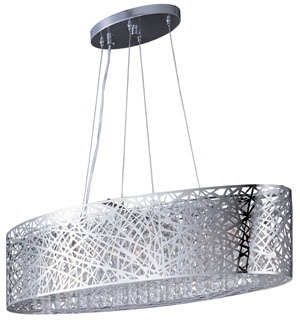 ET2 E21310-10PC Inca Modern Metal Web Laser-cut Sheath with Crystal Oval Pendant Ceiling Lighting, 9-Light Xenon 360 Watts, 10"H x 12"W x 32"L, Polished Chrome