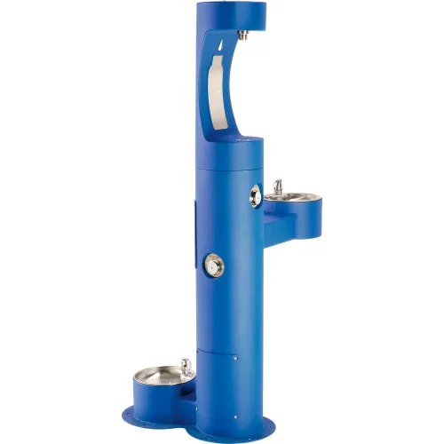 Elkay Outdoor ezH2O Upper Bottle Filling Station Bi-Level, Pedestal with Pet Station Non-Filtered Non-Refrigerated Blue
