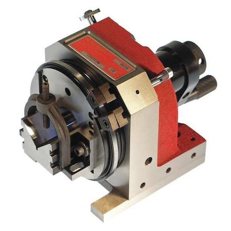 'Spin Index Fixture, Collet Capacity All 5C Collets, V-Block Capacity 1-5/8 In., Through Hole Dia. 1-1/4 In., Height to Spindle Centerline 3 In., Overall Length 8-15/16 In., Overall Width 5 In., Base Length 5-3/16 In., Base Width 5 In., Overall Height 5-1/2 In., Number of Indexing Positions 72, Hard Stop Spacing 5 Degrees , Squareness 0.0002 In., Parallelism 0.0002 In., Max. Spindle Runout 0.00005 In., Includes Drawbar Wooden Case'