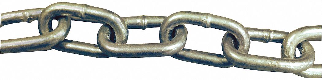 - <b>Price For:</b> Each <b>For Lifting</b>: No <b>Item</b>: Chain <b>Welding Type</b>: Welded <b>Chain Link Style</b>: Straight <b>Chain Item</b>: Chain <b>Chain Classification</b>: Coil <b>Links per Foot</b>: 9.6 <b>Working Load Limit</b>: 1300 lb. <b>Trade Size</b>: 1/4" <b>Grade</b>: 30 <b>Material</b>: steel <b>Length</b>: 20 ft. <b>Finish</b>: Galvanized <b>Country of Origin (subject to change)</b>: United States
