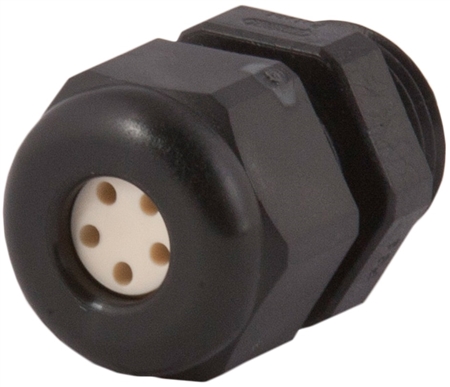 CD16N4-BK - Sealcon/Hummel - Strain Relief, Multi-Hole, Dome Top, Black Nylon, 1/2"NPT, Holes: 5 x .16" (4.0 mm), 1.597.1219.71