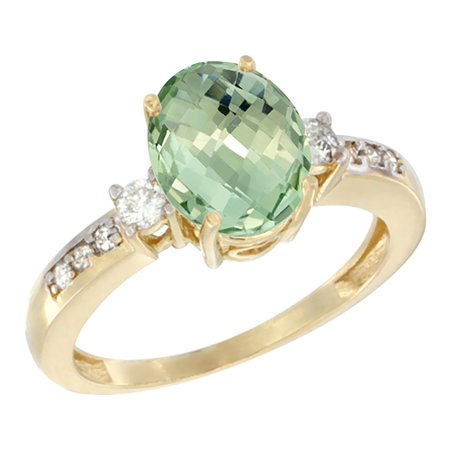 14K Yellow Gold Natural Green Amethyst Ring Oval 9x7 mm Diamond Accent, sizes 5 - 10