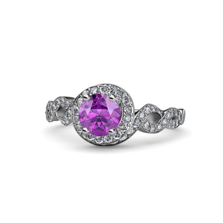 <li>Signature Collection</li><li>Fine Halo Rings</li><li>0.95 ct Amethyst and 0.55 ct tw Diamond Twisted Halo Engagement Ring.</li><li>62 Round Diamond and 1 Round Amethyst set using Pave and Prong Setting.</li>