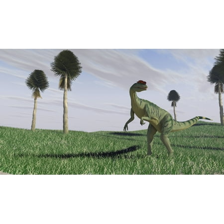 Posterazzi PSTKVA600396P Dilophosaurus hunting for its next meal in an open field Poster Print, 18 x 10