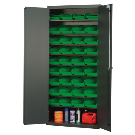 Quantum Storage Bin Cabinet, Sloped Shelf, 36Bins, Green - QPR-107GN