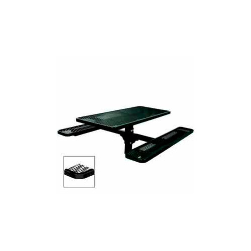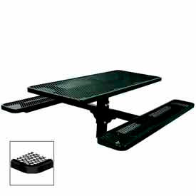 Ultra Play P The 6' heavy duty diamond pattern pedestal table has a 4" square center post and 3" square arm posts. Table is ADA compliant. Features: -Picnic table. -Constructed of coated steel. -Durable thermoplastic coated planks and powder coated frame. -Diamond pattern rectangular table. -All mig welded frame, in-ground mount. -4" x 4" Square center post, 3" x 3" Arm Post. -Overall dimensions: 30" H x 70" W x 72" D. Specifications Frame Color/Coat Color: Black/Black