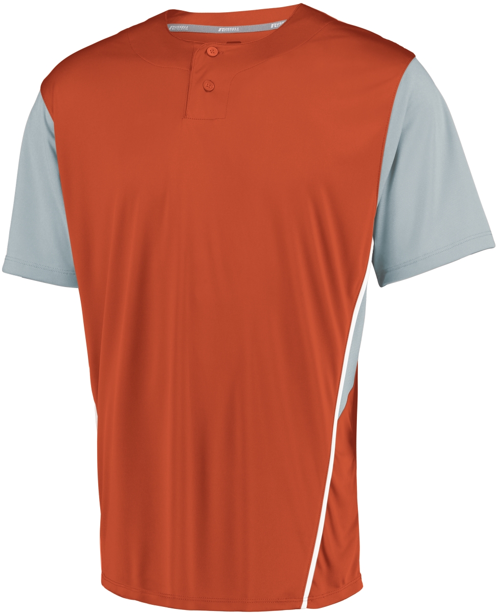 Russell 3R6X2M.B9O.XL Adult Performance Two-Button Color Block Jersey, Burnt Orange & Baseball Gray - Extra Large