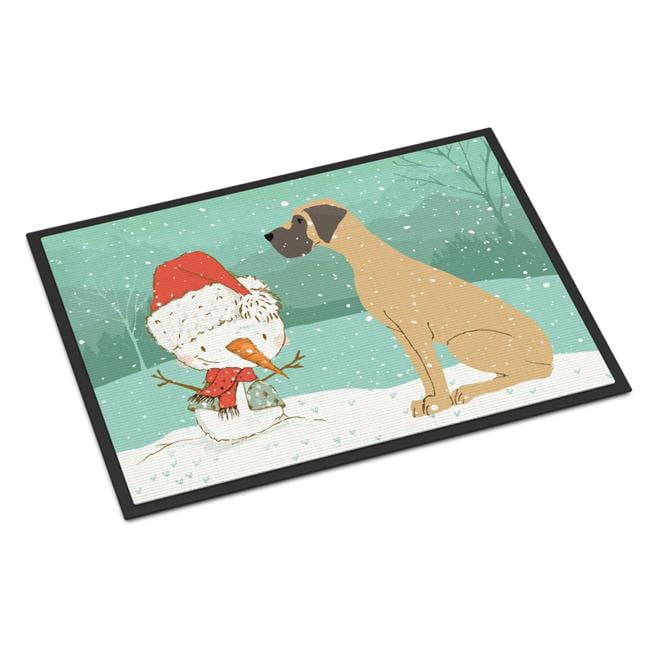 Carolines Treasures CK2040MAT 18 x 27 in. Fawn Natural Great Dane Snowman Christmas Indoor or Outdoor Mat