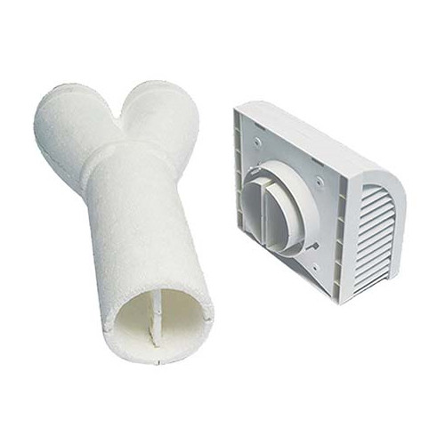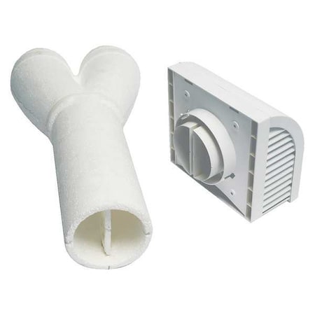 WhisperComfort polypropylene wall cap accessory allows both exhaust (fromThe right) and supply (fromThe left) airflow through a single 5.5"-5.75" penetration inThe building envelope. Due toThe dividers inside ofThe unique Y-shape chamber andThe new wall cap, cross contamination is prevented.