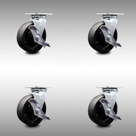 Stainless Steel Glass Filled Nylon Swivel Top Plate Caster Set of 4 w/6" x 2" Black Wheels - Includes 4 Swivel w/Top Lock Brakes & Bolt on Swivel Locks - 5000 lbs Total Capacity - Service Caster Brand