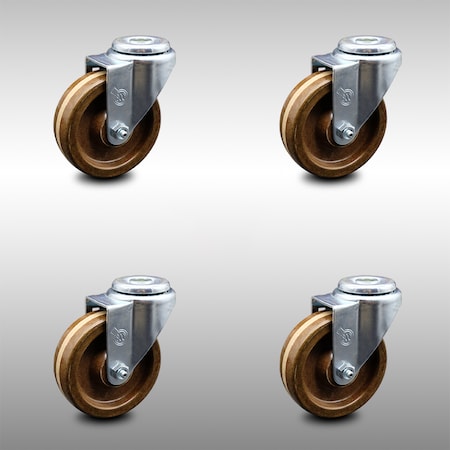 Stainless Steel High Temperature Phenolic Swivel Bolt Hole Caster Set of 4 w/4" x 1.25" Brown Wheels - Includes 4 Swivel - 1200 lbs Total Capacity - Service Caster Brand