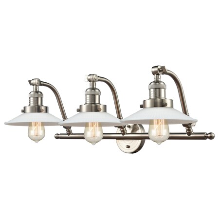 INNOVATIONS LIGHTING 515-3W-SN-G1-LED FRANKLIN RESTORATION HALOPHANE 3 LIGHT 28 INCH WALL MOUNT WHITE GLASS VANITY...