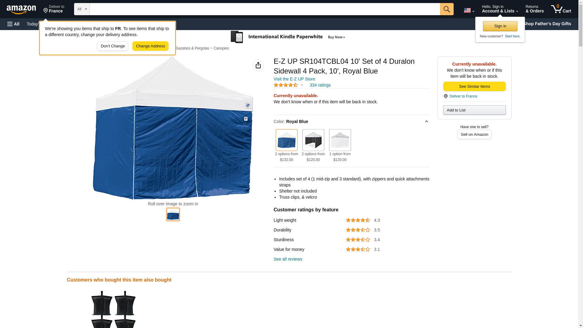 E-Z UP SR104TCBL04 10' Set of 4 Duralon Sidewall 4 Pack, 10', Royal Blue