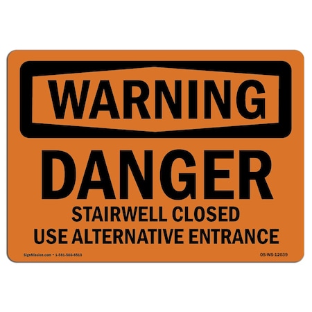 OSHA WARNING Sign, Danger Stairwell Closed Use Alternative Entrance, 24in X 18in Decal