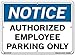 Vestil SI-N-15-C-PS-040 Notice Sign Polystyrene .040" Overall Size 14.5"W x 10.5"H Authorized Employee Parking Only , 10.5" Height, 14.5" Wide, 0.04" Length