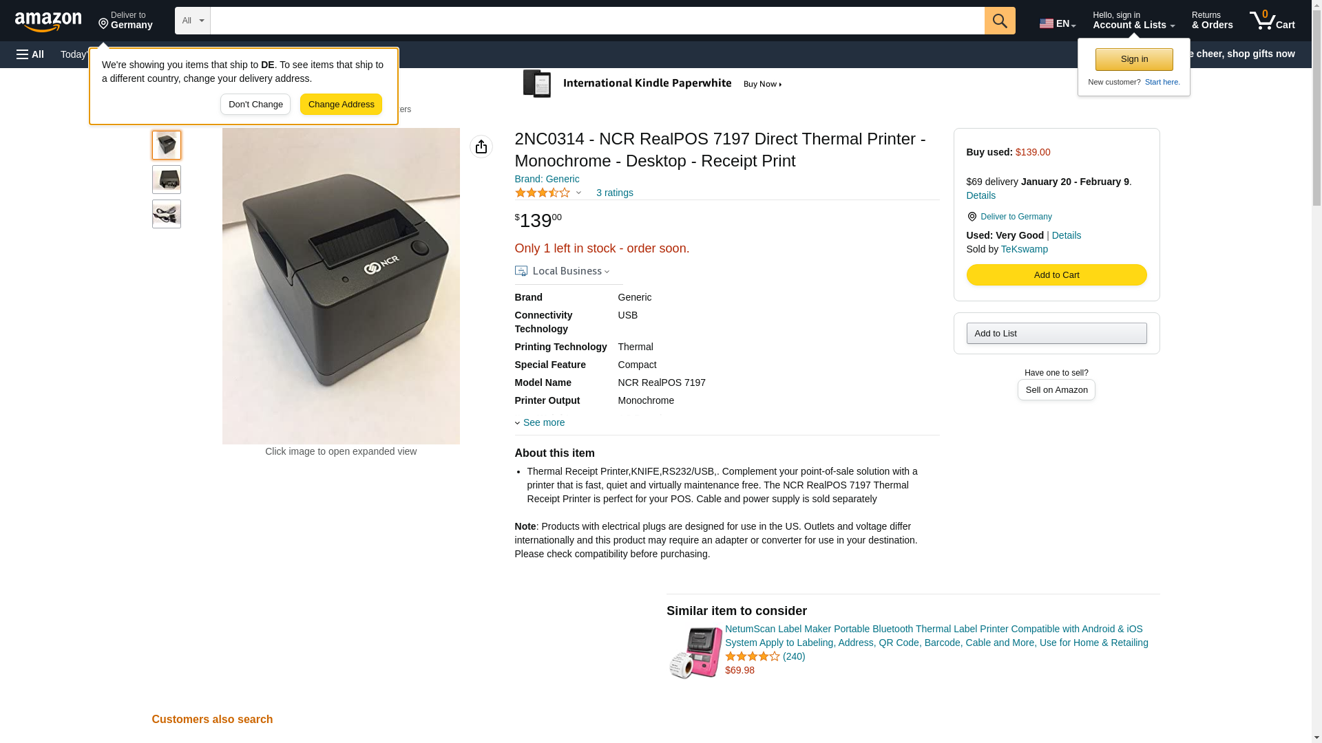 - Thermal Receipt Printer,KNIFE,RS232/USB,. Complement your point-of-sale solution with a printer that is fast, quiet and virtually maintenance free. The NCR RealPOS 7197 Thermal Receipt Printer is perfect for your POS. Cable and power supply is sold separately