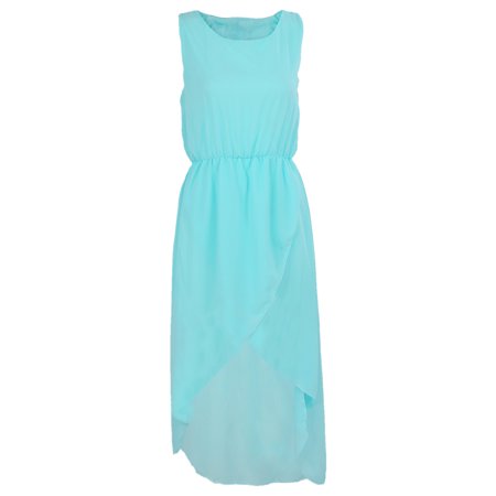 <ul> <li>Color:Light blue</li> <li>Collar:round neck</li> <li>Size:S;clothes length:115cm/45.28inch;bust:82cm/32.28inch;waist:60cm/23.62inch</li> </ul>