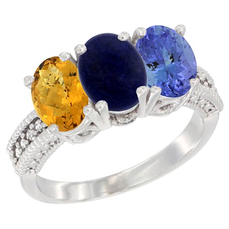 14K White Gold Natural Whisky Quartz, Lapis Ring with Tanzanite Ring 3-Stone 7x5 mm Oval Diamond Accent, sizes 5 - 10