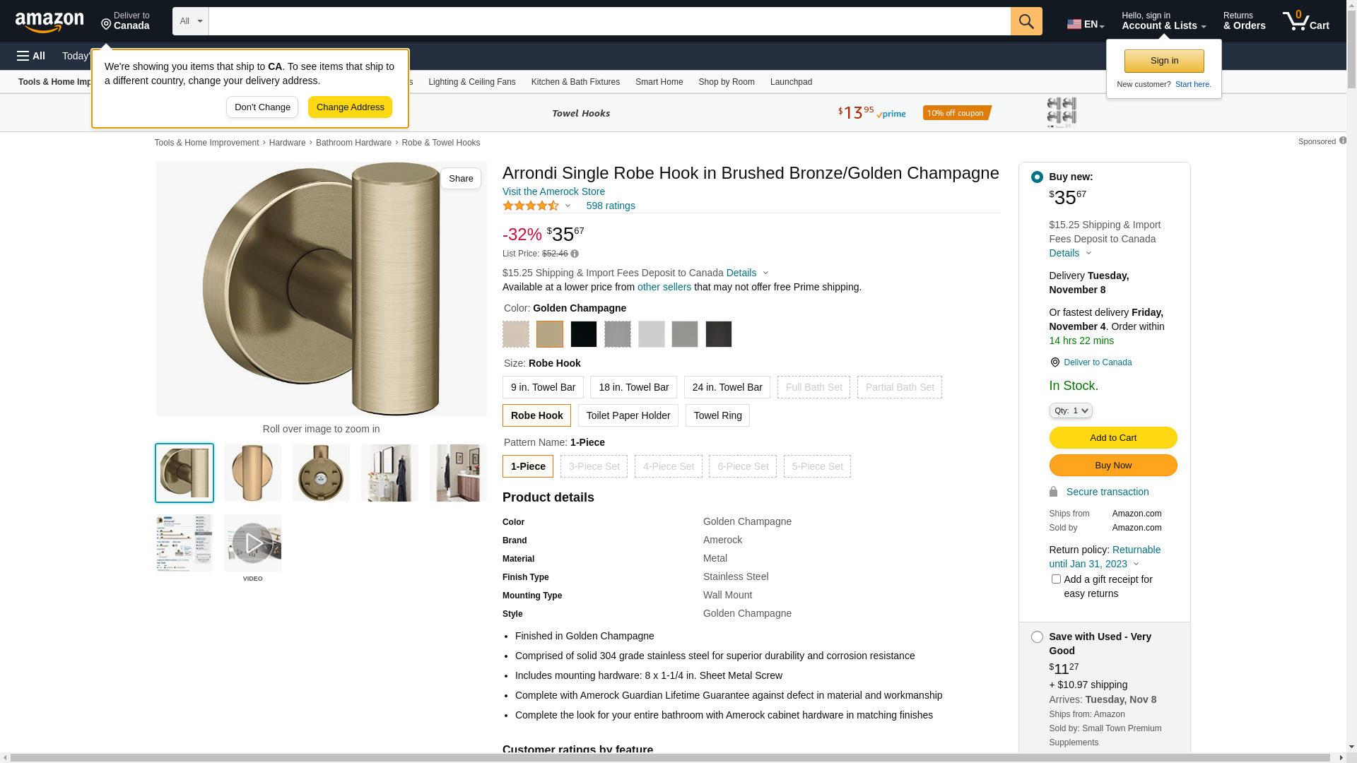 - Type: Accessory - Robe Hook