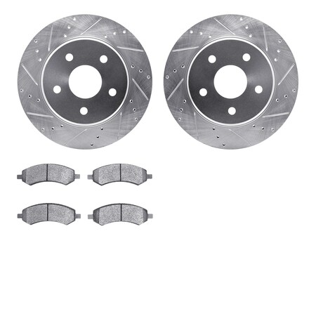 Dynamic Friction Company Front Brake Rotors-Drilled and Slotted-Silver with 5000 Advanced Brake Pads 7502-42099