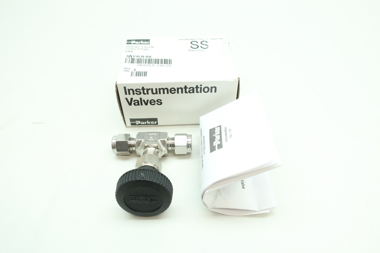 - Item|Instrument Needle Valve#Brand|Parker#Model|4A-V4LN-SS#Ports|1/4 A-Lok X 1/4 A-Lok#Body Size|1/4 Inch#Type|Instrumentation Valves#Material|Stainless Steel#Seat Material|PTFE#Stem Type|Needle#Max Pressure|5000 PSIG