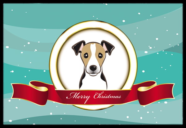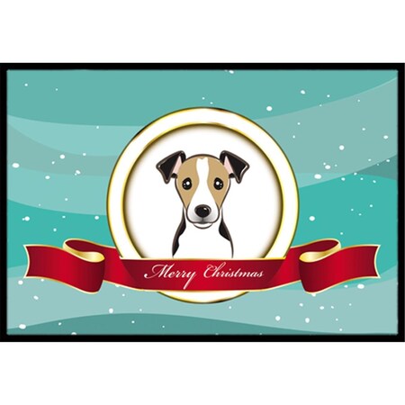 Caroline's Treasures BB1571MAT Tricolor Jack Russell Terrier Merry Christmas Doormat 18x27 Front Door Mat Indoor Outdoor Rugs for Entryway, Non Slip Washable Low Pile, 18H X 27W