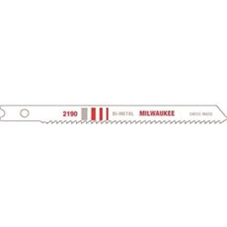 BLADE JIG SAW BMTL 14T 3-5/8IN<br>Specifications:<br>Application: For metal applicationsGet professional-grade performance and longer blade life with the Milwaukee 3-5/8 in 14 TPI bi-metal jig saw blade (5-Pack). These heavy-duty blades lasts longer than high-speed steel or carbon blades, combining the strength to cut metal with the durability to withstand impacts without breaking. With Milwaukee attention to blade material, tooth shape and sharpness, the jig saw blades produce clean, fast cuts in metal over 1/4 in THK. This blade has a universal tang and fits Milwaukee jig saw model 6256-6 and other popular brands.