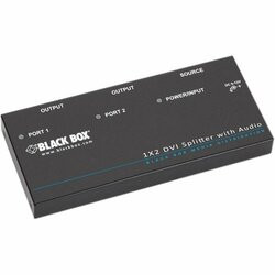 Broadcast HD video, even HDCP content, to two displays with this easy-to-use splitter.<br/><br/><strong>Brand Name</strong>: Black Box<br/><strong>Product Type</strong>: Signal Splitter<br/><br/><br/><b>General Information</b><br/>Brand Name: Black Box<br/>Manufacturer Part Number: AVSP-DVI1X2<br/>Manufacturer: Black Box Corporation<br/>Marketing Information: Broadcast HD video, even HDCP content, to two displays with this easy-to-use splitter.<br/>Package Contents: DVI-D Splitter with Audio and HDCP, 1 x 2 Power Supply Set of Rubber Feet User Manual<br/>Product Name: DVI-D Splitter with Audio and HDCP, 1 x 2<br/>Product Type: Signal Splitter<br/><br/><b>Interfaces/Ports</b><br/>Ports: 1 x DVI-D - Digital Video In<br/>Ports: 1 x Mini-phone Stereo - Audio In<br/>Ports: 2 x DVI-D - Digital Video Out<br/>Ports: 2 x Mini-phone Stereo - Audio Out<br/><br/><b>Miscellaneous</b><br/>Additional Information: Ideal for digital signage, broadcasting, and healthcare applications. Supports Full-HD 1080p and WUXGA display resolutions. Works with EDID-capable screens for optimized video output. Also supports stereo audio input and output. Cascadable for increasing the number of outputs. Sets up fast. No interface card or software to install. LEDs indicate signal activity on connected ports. Automatically enters power-save mode if input is lost. Also av