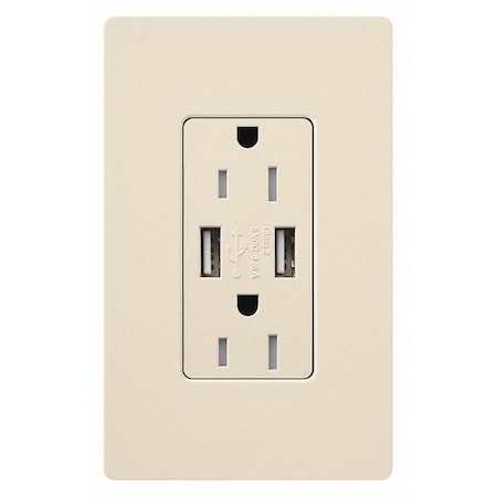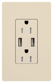 Lutron CAR-15-UBTR-LA Claro Tamper-Resistant USB Receptacle, Light Almond, 15A, 125V : USB/Receptacles - $67.80 EMI Supply, Inc