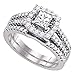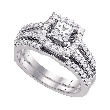 14k White Gold Womens Princess Diamond Bridal Wedding Engagement Ring Band Set 1 Cttw