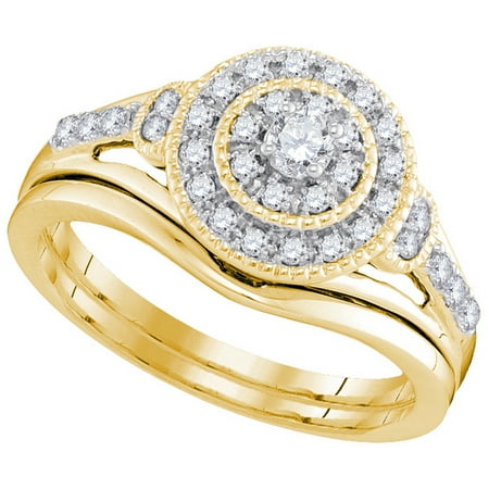 10kt Yellow Gold Womens Round Diamond Bridal Wedding Engagement Ring Band Set 1/3 Cttw. †Combined diamond weight of 1/3 carats total weight represents a range of 0.30 - 0.36 cts. t.w.