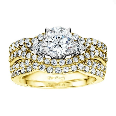 <ul> <li>Engagement Ring sets are made to fit together perfectly.</li> <li>The ring is set with 2.95 carats of Round stones Brilliant Moissanite</li> <li>This ring is available in 10K Gold, 14k Gold and sterling Silver. Click TwoBirch above to see it in all of its variations.</li> </ul>