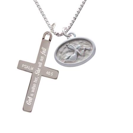 1.3mm Box Chain necklace is 18"+2" Extender. Lobster claw clasp. Engraved Stainless Steel Cross is approx. 1.3 inches long.