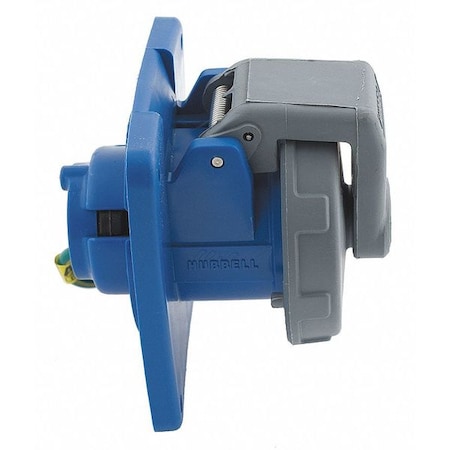 IEC Nonmetallic Watertight Pin and Sleeve DevicesDesigned and manufactured to meet international standards IEC 60309-1 and 60309-2. Feature a nonconductive nylon housing and OSHA-compliant lockout hole in the plug shroud to provide additional safety. The all-nonmetallic housing withstands heavy-duty industrial environments. Devices are color-coded for each specific voltage. Pin configurations are singly rated to prevent accidental mismating.<br /><br /> Item - Plugs and Receptacles: Watertight Pin and Sleeve Receptacle<br /> Body Material - Pin and Sleeve: Zytel 101 Nylon<br /> Amps - Plugs and Receptacles: 100<br /> Voltage - Plugs and Receptacles: 250VAC<br /> Color - Plugs and Receptacles: Blue<br /> Number of Poles: 2<br /> Number of Wires: 3<br /> Grounding Style: IEC<br /> Phase - Electrical: 1<br /> Features: Abuse Resistant<br /> HP: 15<br /> Switch Rated: No<br /> Standards: UL Listed E146032, CSA Certified LR285C, C22.2 No. 182.1, IEC 60309-1 and 60309-2<br /> Item: Watertight Pin and Sleeve Receptacle