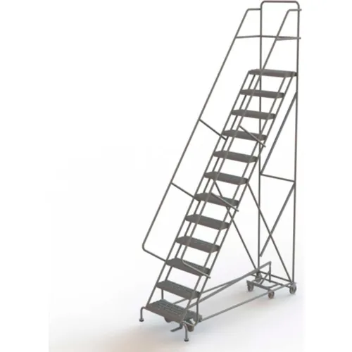 Tri Arc Mfg 12 Step Steel Easy Turn Rolling Ladder, Serrated Tread, Safety Angle - KDAD112242