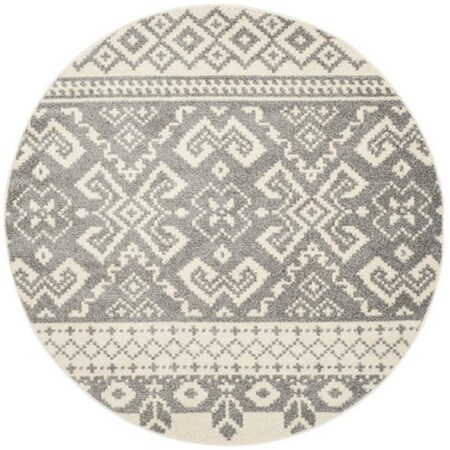 Adirondack Power Loomed Round Rug- Ivory - Silver- 4 x 4 ft.