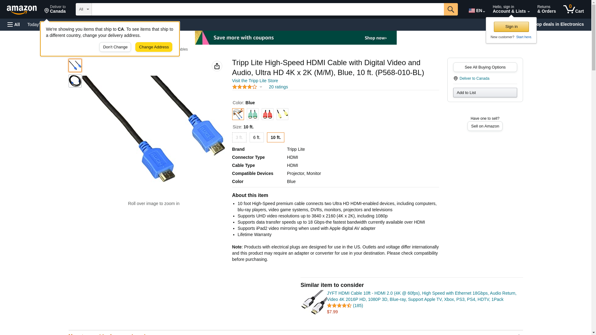 | Feature | 10 foot High-Speed premium cable connects two Ultra HD HDMI-enabled devices, including computers, blu-ray players, video game systems, DVRs, monitors, projectors and televisions |