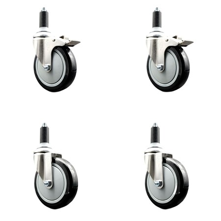 5 Inch 316SS Black Poly Swivel 1-1/4 Inch Expanding Stem Caster Lock Brake, 2PK